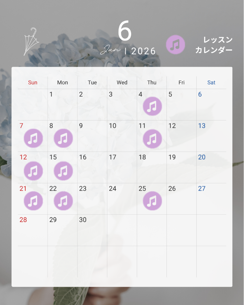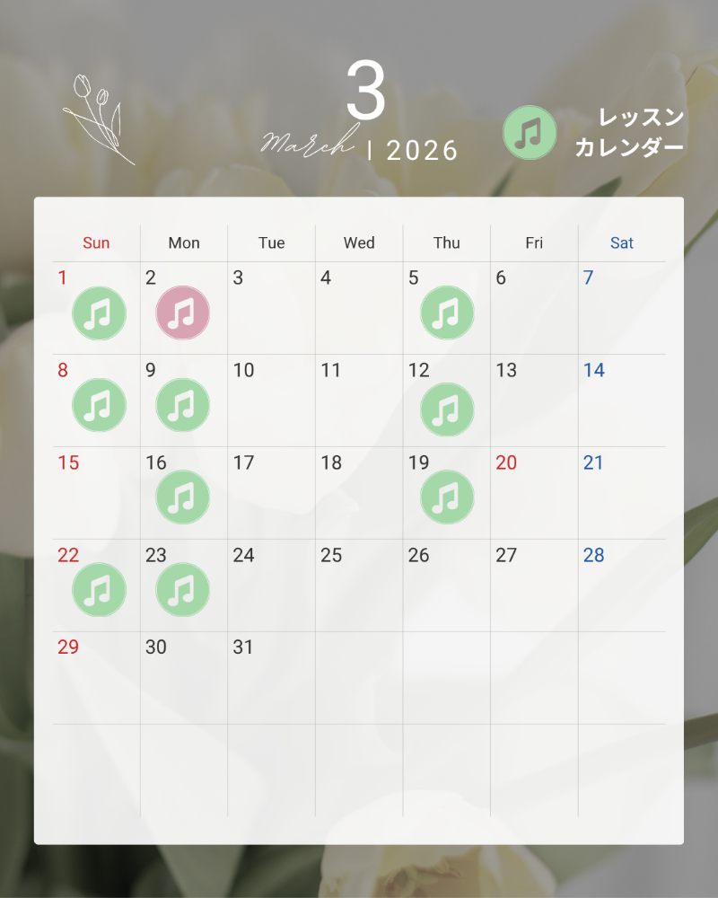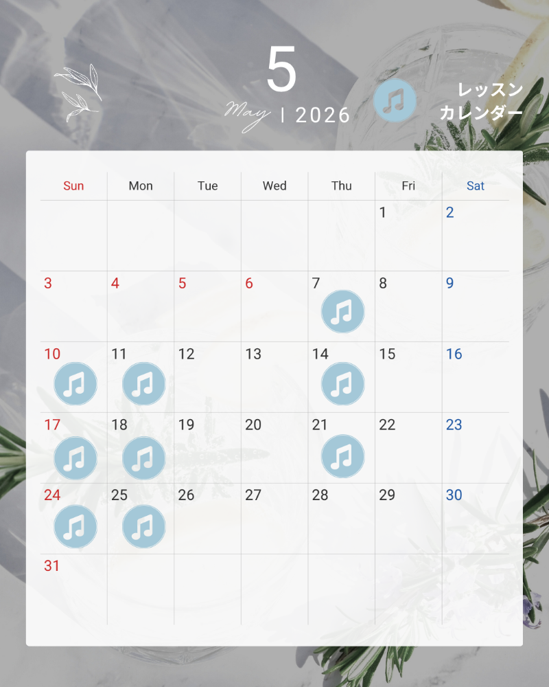 ꕤ 体験ご希望の方へ ꕤ印が付いている日程がレッスン日になりますので、この中から体験日程のご相談をさせていただきます。ご希望の日程がございましたらお知らせください。